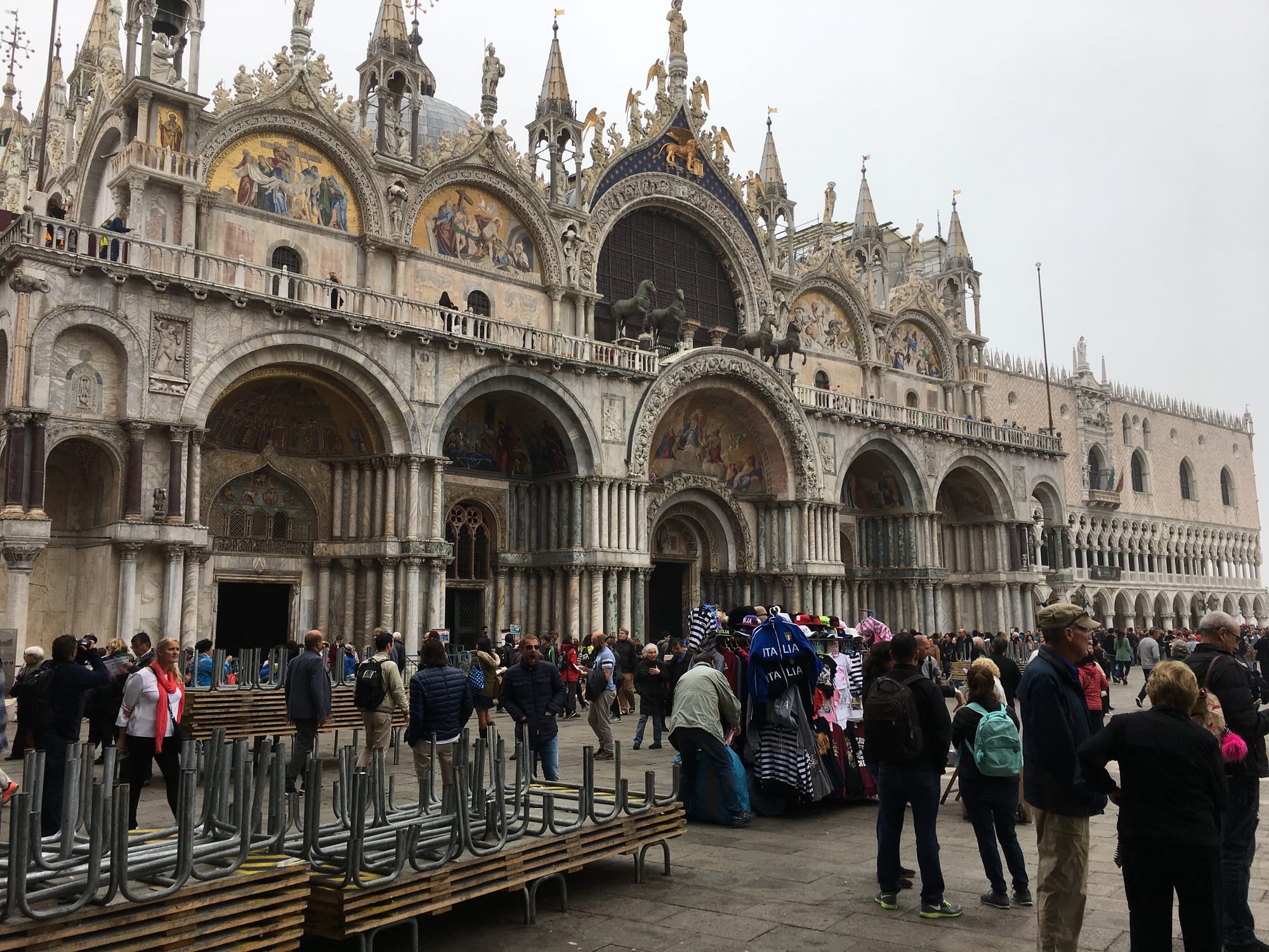 كل شيء كما هو، كاتدرائية سان ماركو الشهيرة بقيت كما هي فن وعمارة وزخرفة بيزنطية مذهبة كأنها لحن خلود ينساب من بين جدرانها يُعْزَفُمن رهبان على هيئة نقوش وتماثيل منذ أن بنيت عام ٨٢٨، غنية هي فالدخول الى وسطها لقاء مبلغ بسيط وايقاد شمعة ودعاء في باحتها مستجاب لقاء مبلغاً آخراً كذلك بسيط،يدخلها السواح والفنانون وعشاق الدنيا والمغرمون بالتاريخ طوال أيام الاسبوعوإنْيأخذ الدخول من وقتهم أكثر من ساعة في بعض الأحيان ويستلزم الوقوف خلف البعض خط طويلمرصوص، لا يتدافعون ولا يملون أغلبهم يقرؤون والشباب بهواتفهم مشغولون. هي مركز المدينة وساحة لها يحط ويتطاير وسطها الحمام،تحيط بها من الجهات الثلاثة محال تجارية أغلبها هدايا وتراثيات تجاورها مطاعم خفيفةوكافتريات، تتوسدها فرق موسيقية تعزف الحاناً شعبية للسواح وأهل المدينة طوال النهار.